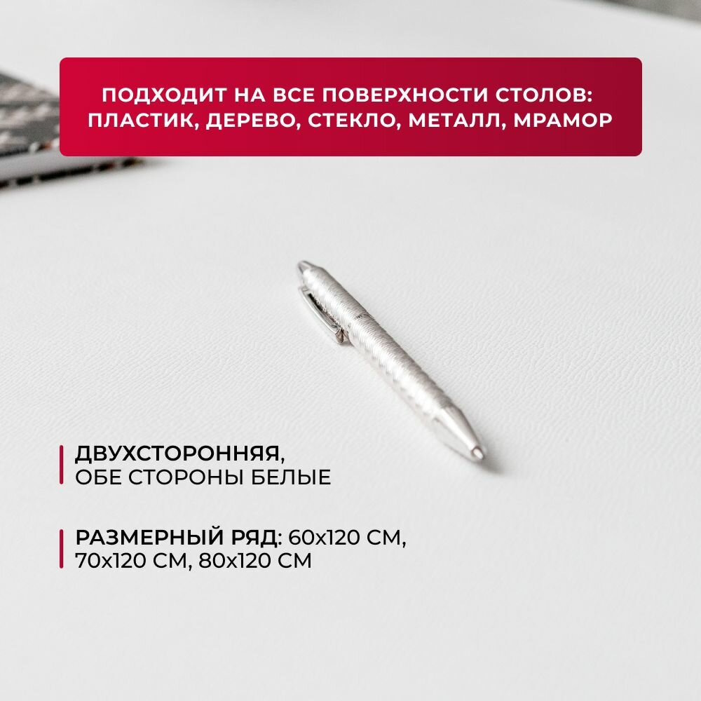 Купить Коврик на стол белый 60 х 120 см двухсторонний из искусственной кожи