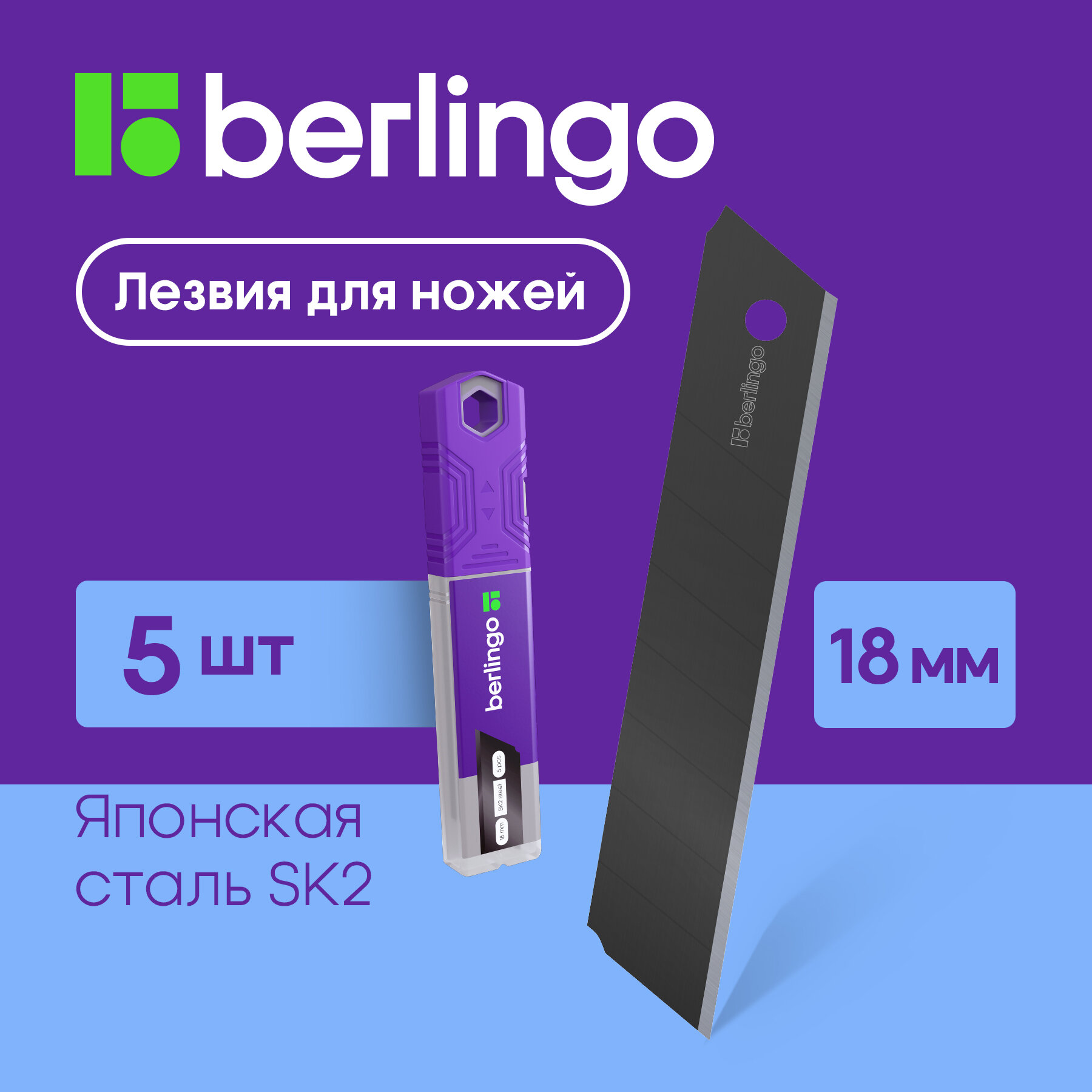 Купить Лезвия для канцелярских ножей Berlingo, 18мм, 5шт, черный цвет, в пластиковом пенале