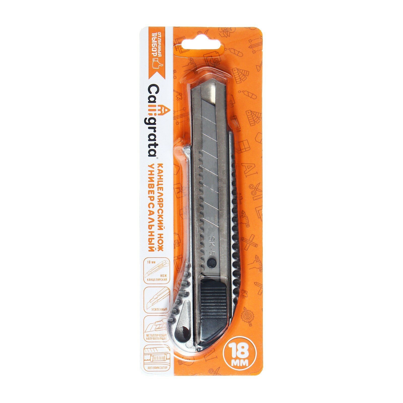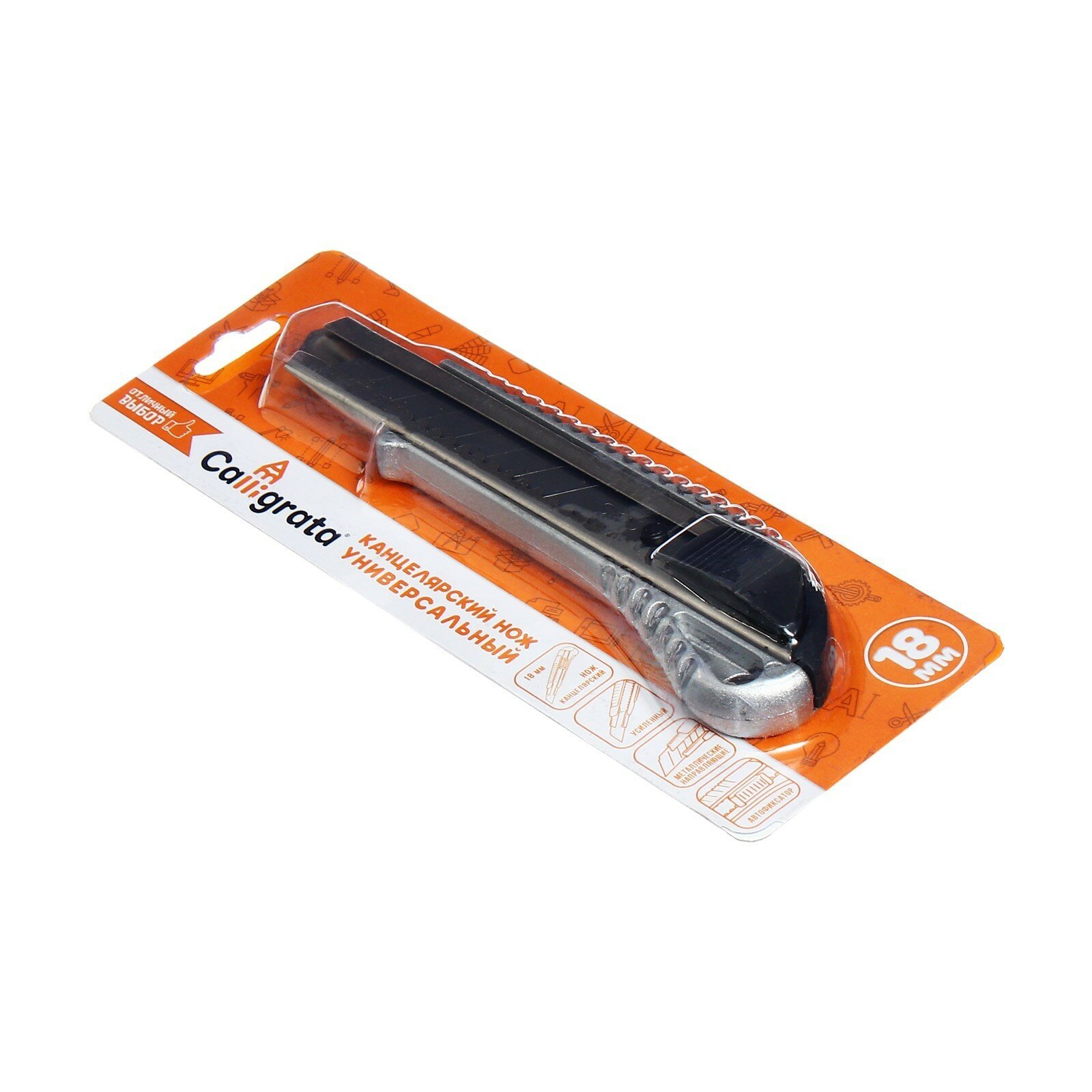 Нож канцелярский, 18 мм, металл с металлическим направляющим фиксатором, на блистере, 5799791 интересное: