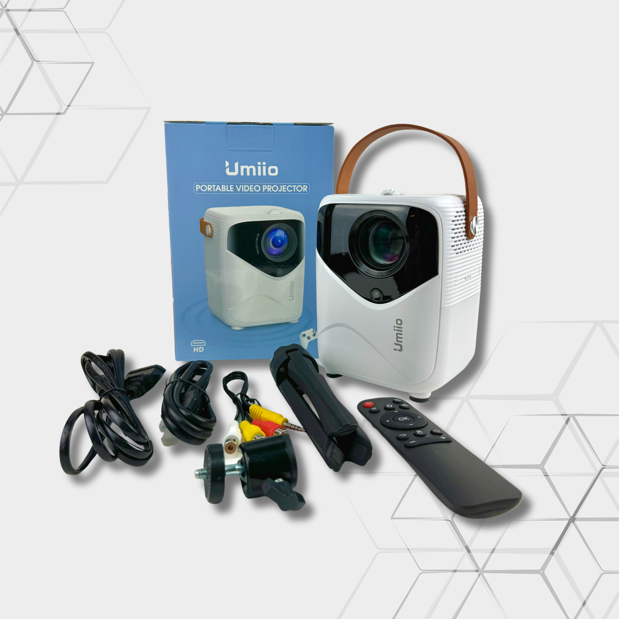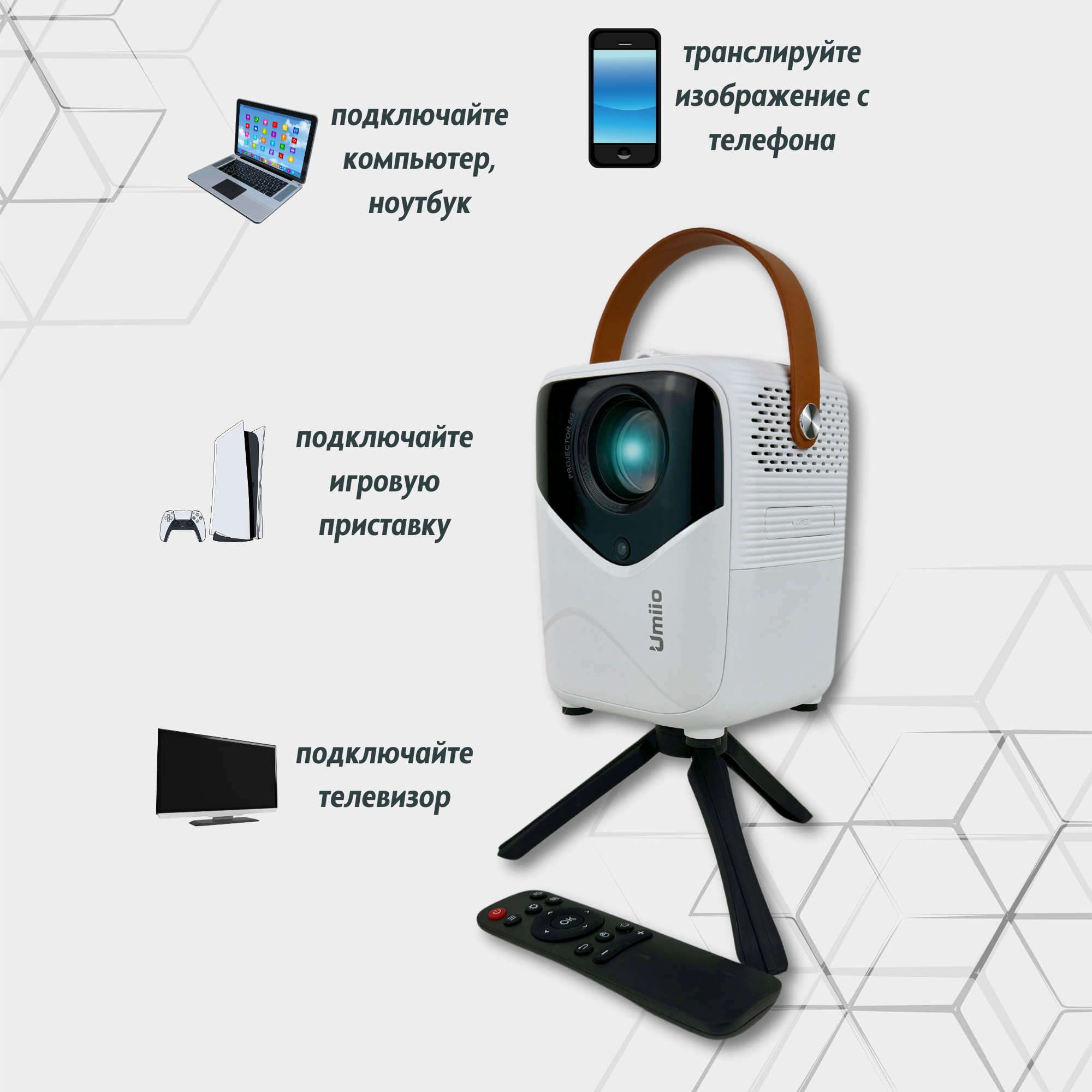 Проектор UMIIO Q2 HDMI для приставки и компьютера Wi-Fi 5G Bluetooth, с штативом, белый