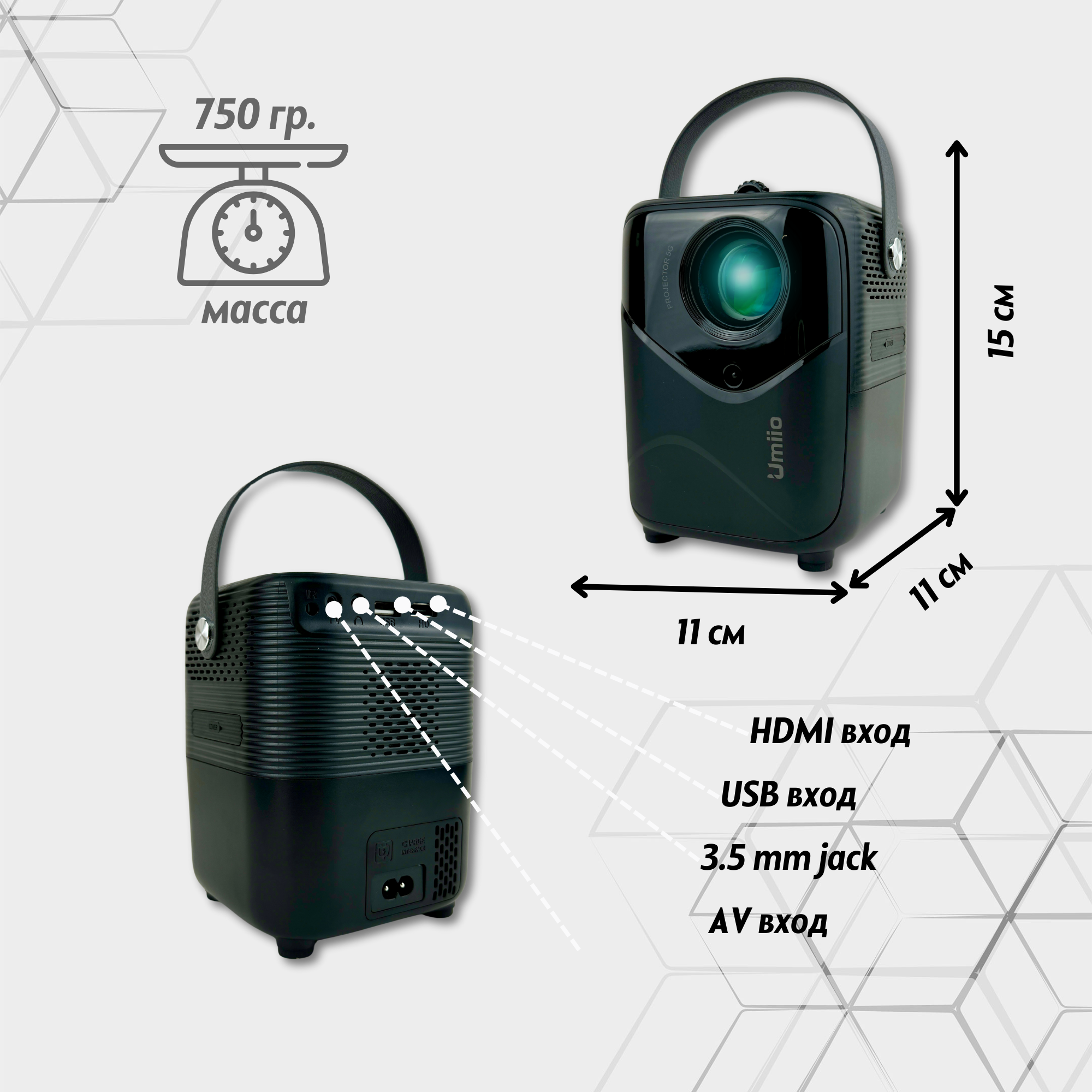Купить Портативный проектор Umiio Q1, разрешение Full HD, 1920х1080, Bluetooth/Wi-Fi/ИК-порт