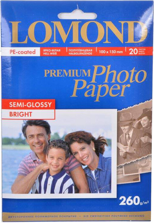 Купить Фотобумага Lomond 10 x 15 см, 260 г/м2 (20 листов) полуглянцевая, ярко-белая (Semi Glossy Bright) (1103302)