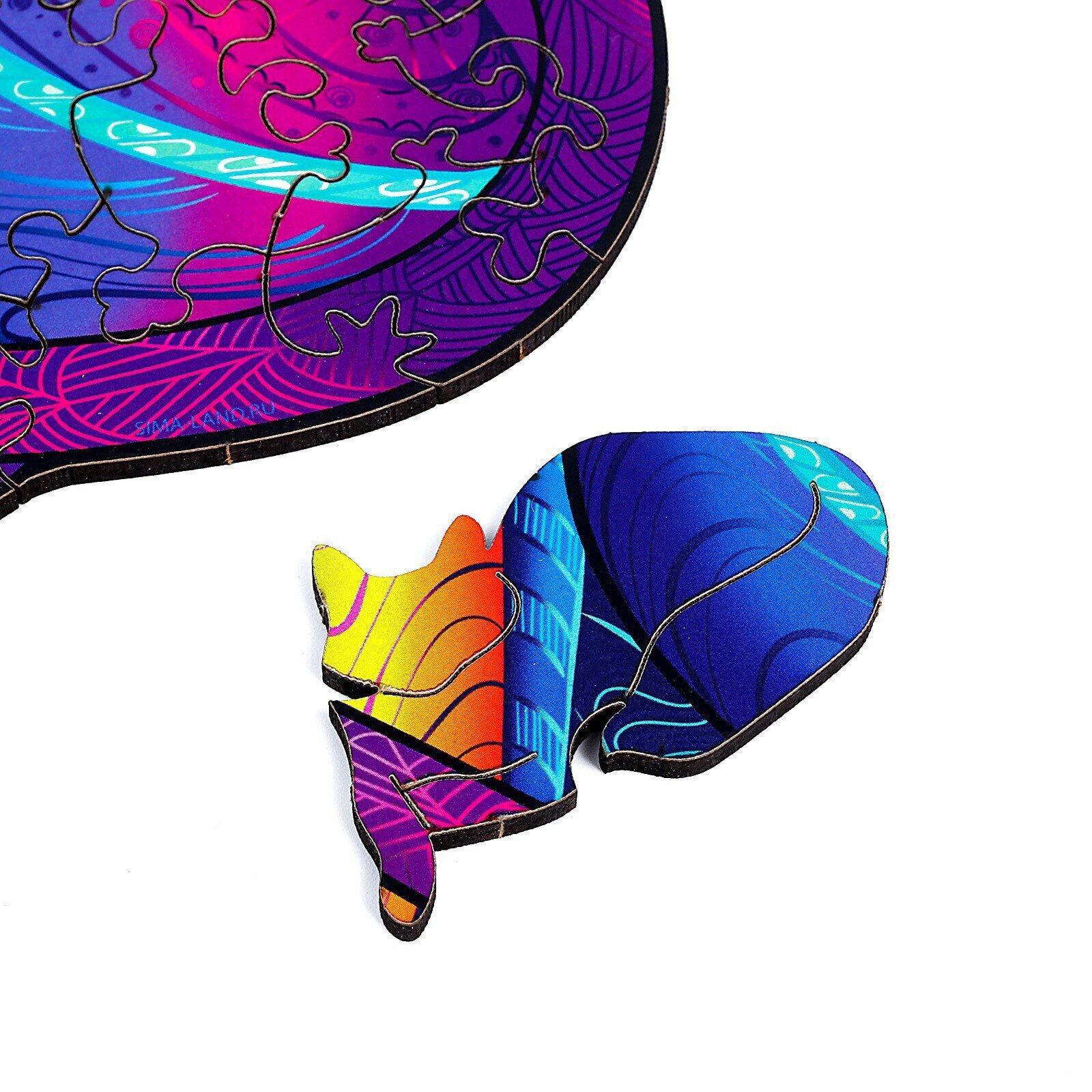 Пазл "Таинственный кот" 59 элементов, деревянный, фигурный, Puzzle