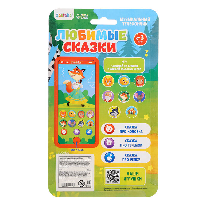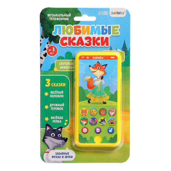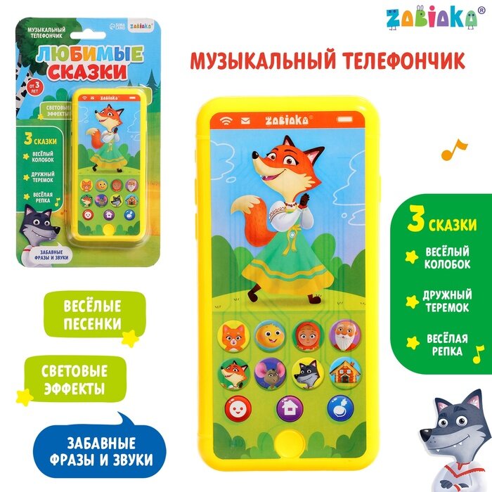 ZABIAKA Музыкальный телефончик «Любимые сказки», звук, жёлтый интересное: