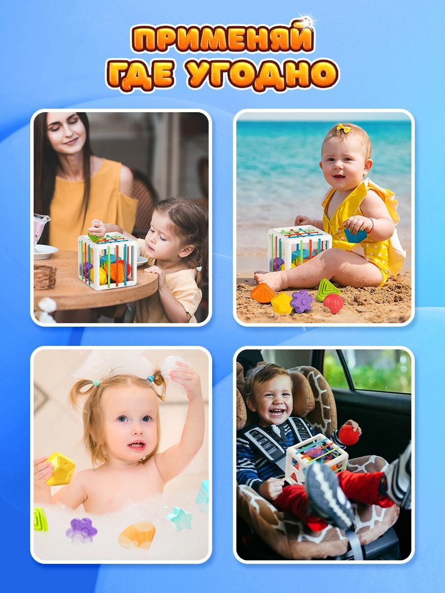 Ниже Вы можете прочитать отзывы на Сортер Куб по монтессори развивающий для малышей с резинками и геометрическими фигурами по цветам-1, ознакомится с подробными характеристиками, посмотреть интересные обзоры и фотографии на Сортер Куб по монтессори развивающий для малышей с резинками и геометрическими фигурами по цветам-1.