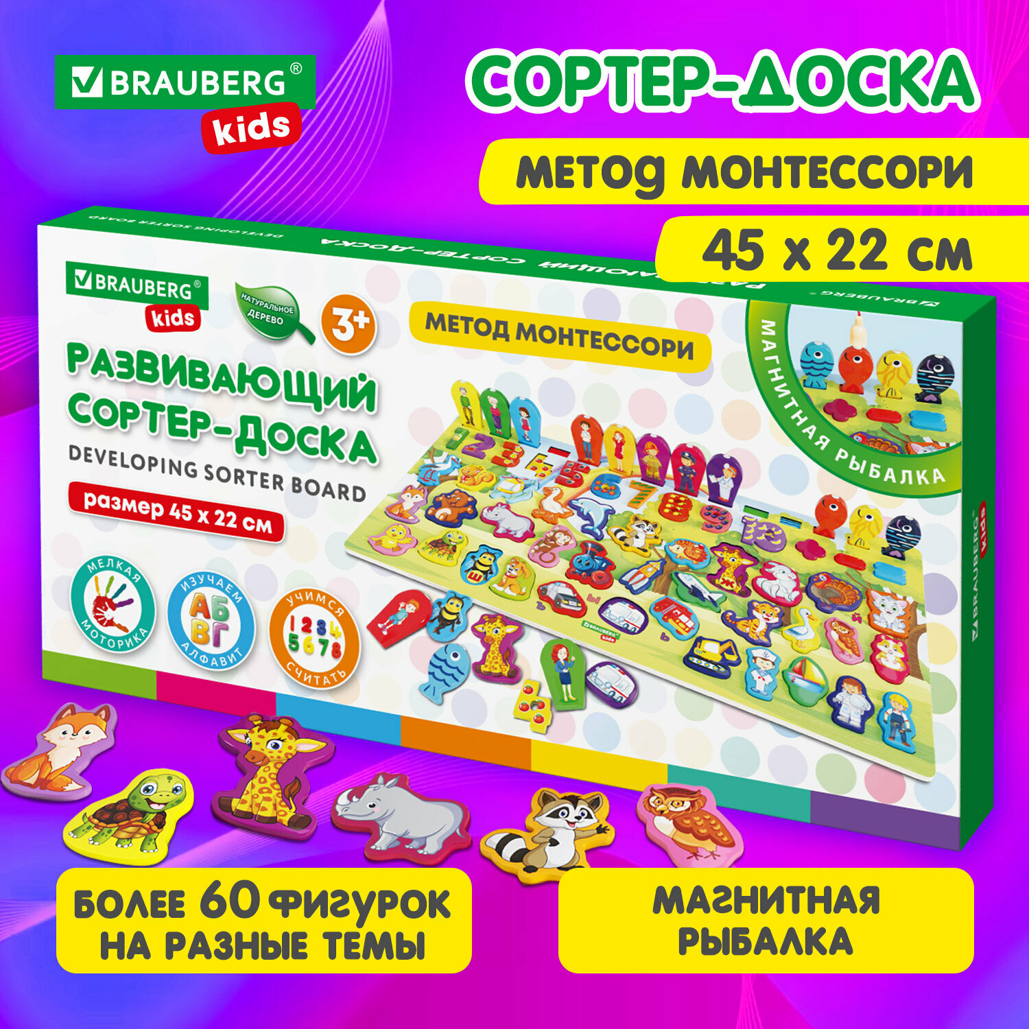 Купить Сортер доска Brauberg kids Монтессори с магнитной рыбалкой 665242