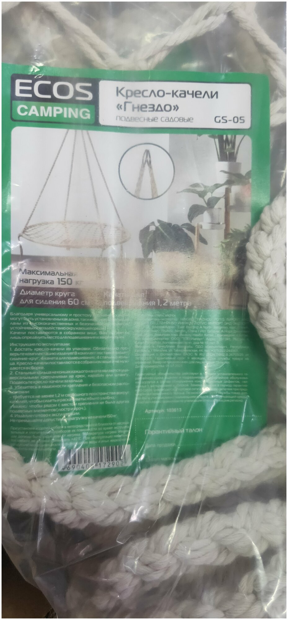 Ниже Вы можете прочитать отзывы на Ecos Кресло-качели Гнездо GS-05 подвесное 103613, ознакомится с подробными характеристиками, посмотреть интересные обзоры и фотографии на Ecos Кресло-качели Гнездо GS-05 подвесное 103613.