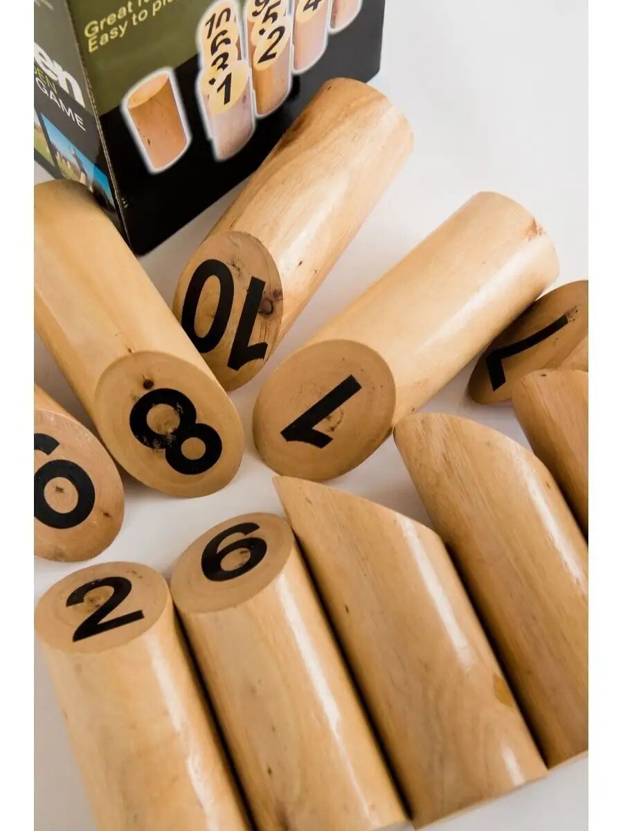 | Дополнительная информация | Игра 10 деревянных кеглей плюс кегля для выбивания все кегли пронумерованы |
