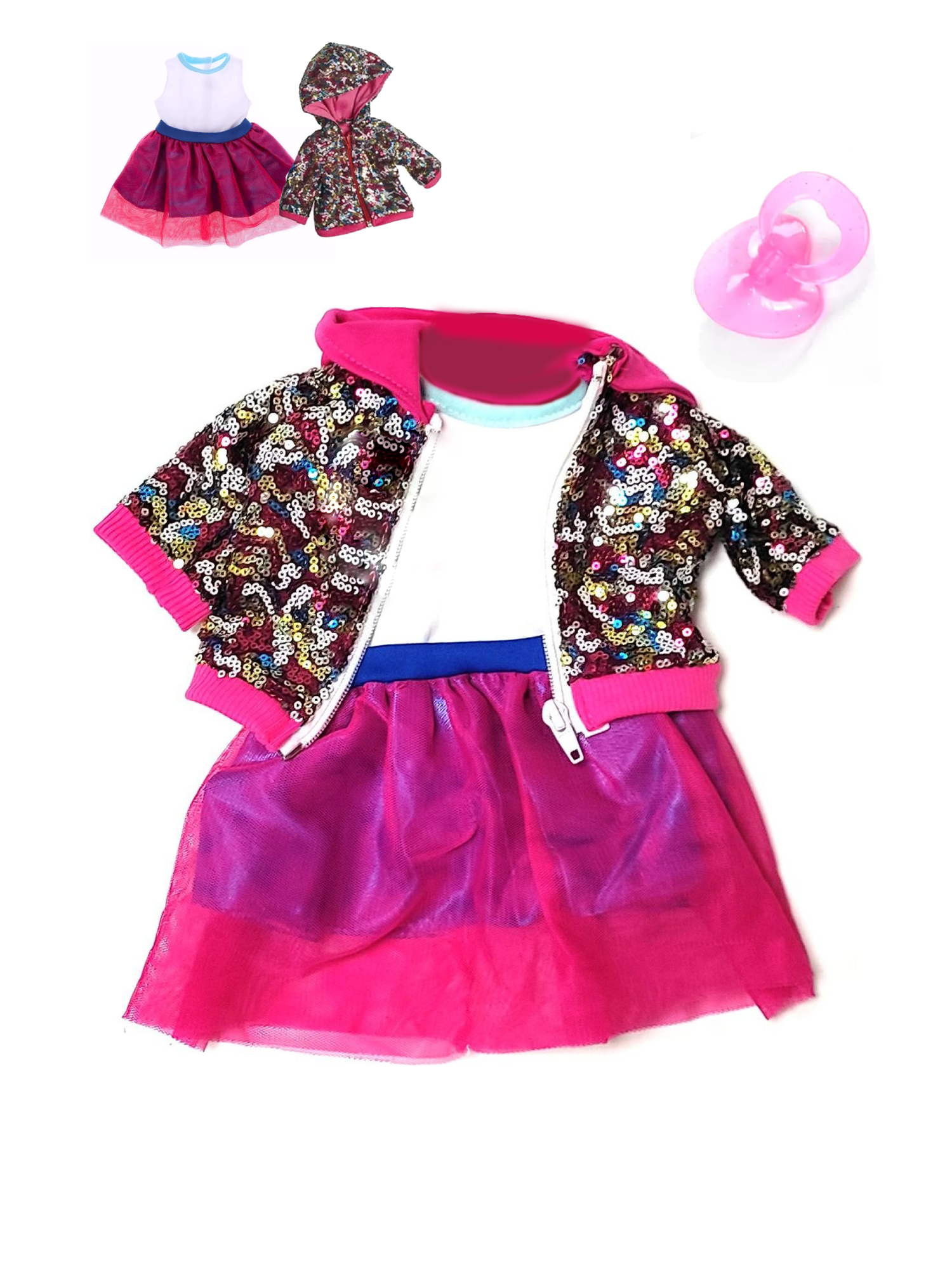 Одежда для куклы пупсов ростом 39 - 45 см, нарядное платье, кофта, соска, 3 предмета интересное: