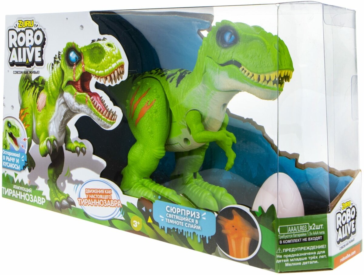 Zuru RoboAlive Игрушка интерактивная Атакующий тираннозавр + слайм зеленый T19289 интересное:
