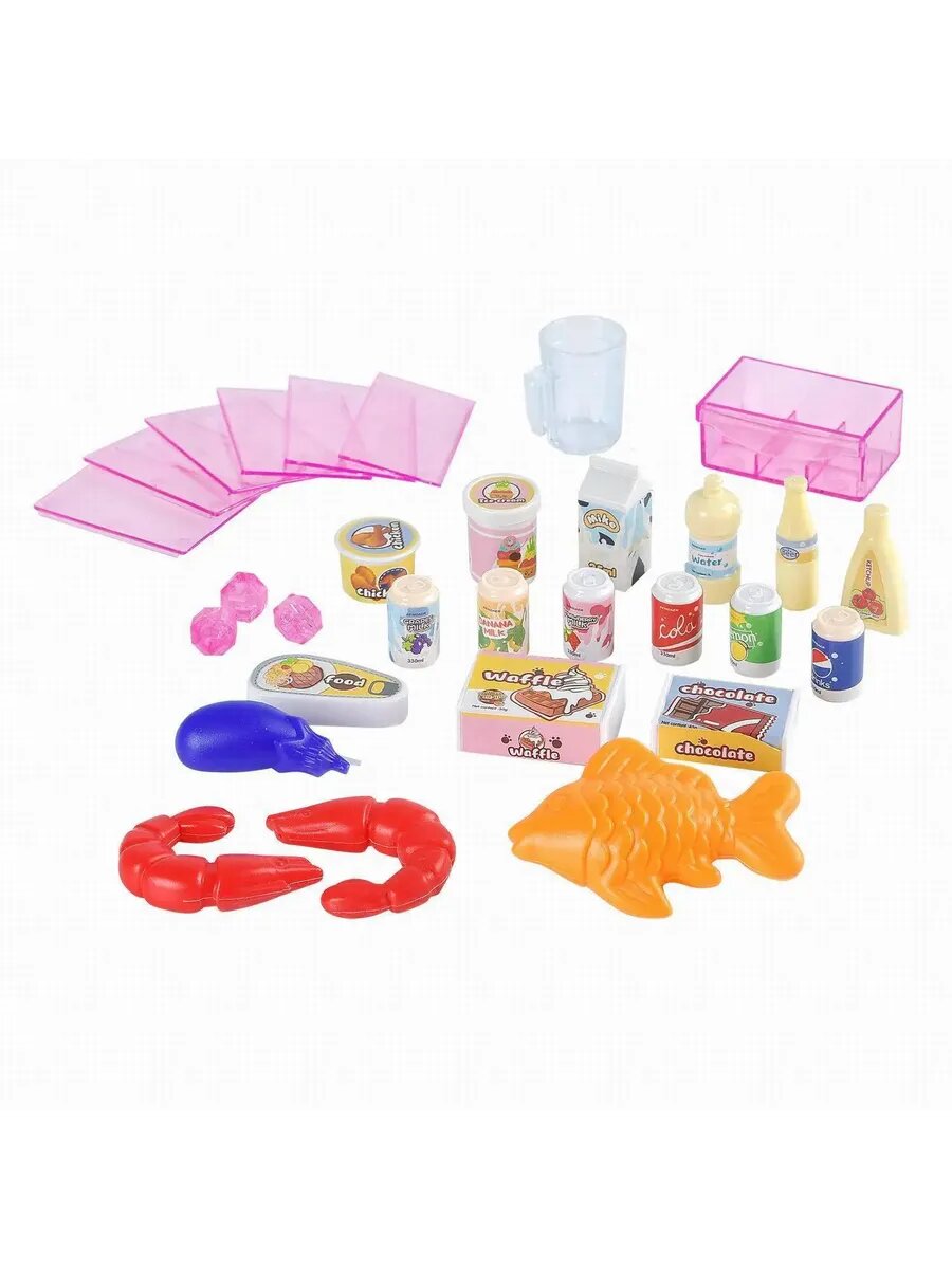 Игрушечная техника ABtoys Помогаю Маме Холодильник с продуктами на батарейках розовый PT-01552