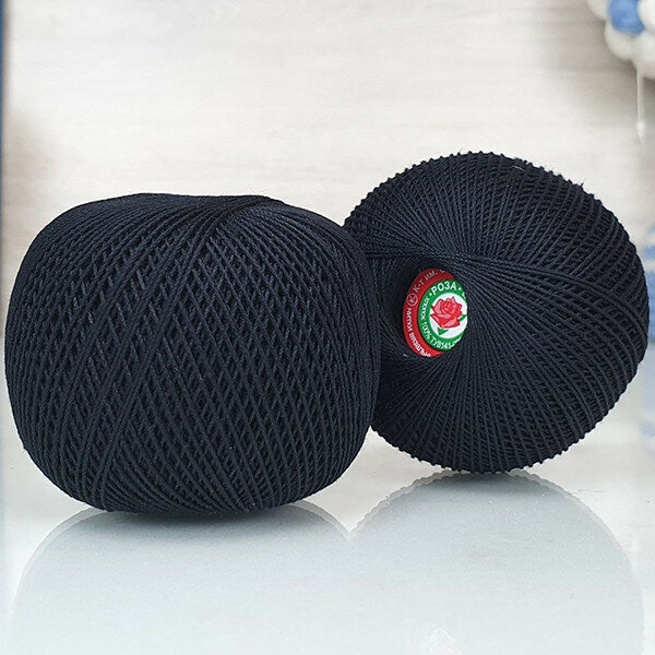 Нитки для вязания и плетения 'роза' (100% хлопок), 50г, 330м (7214 черный), 6 мотков