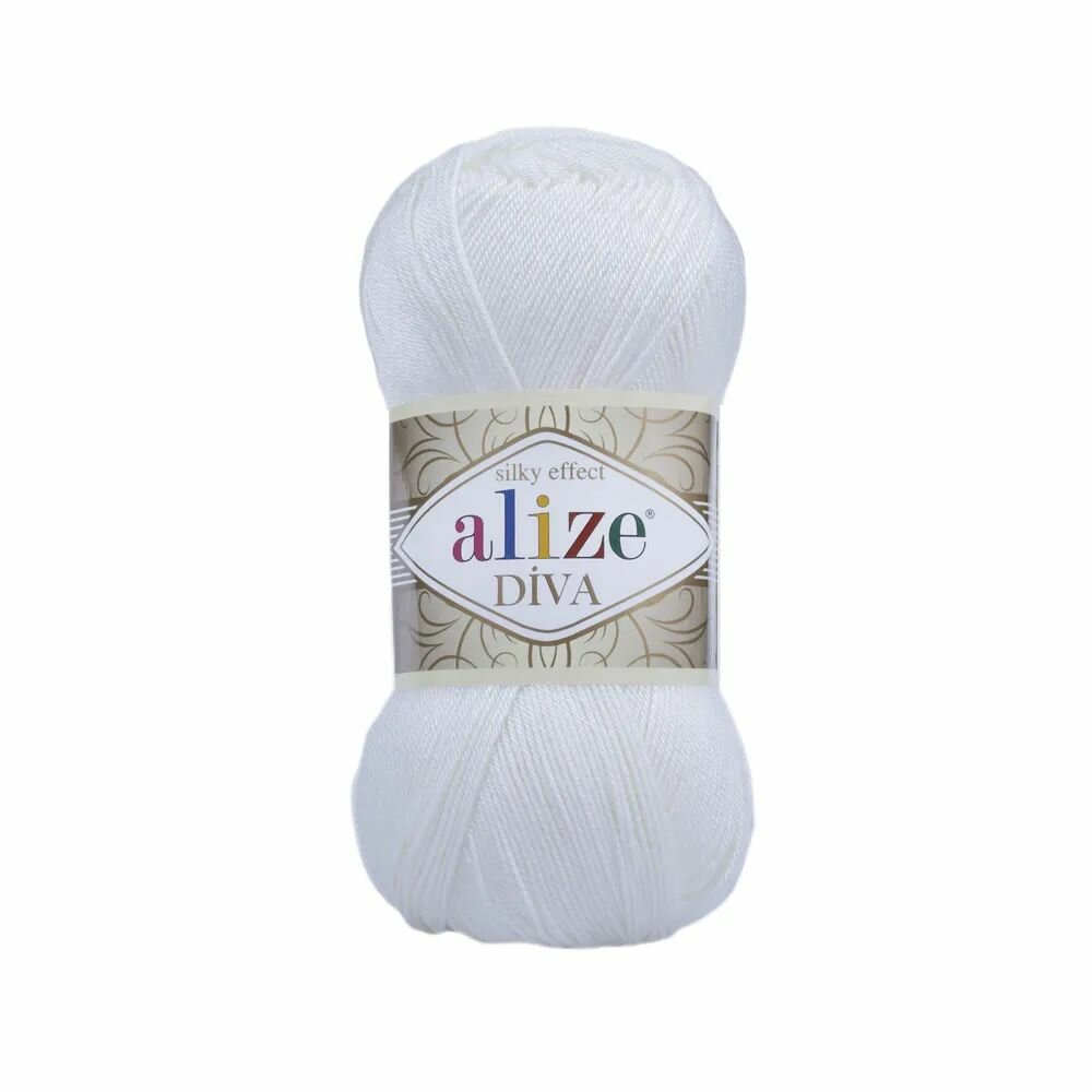Пряжа Alize Diva белый (55), 100%микрофибра, 350м, 100г, 1шт