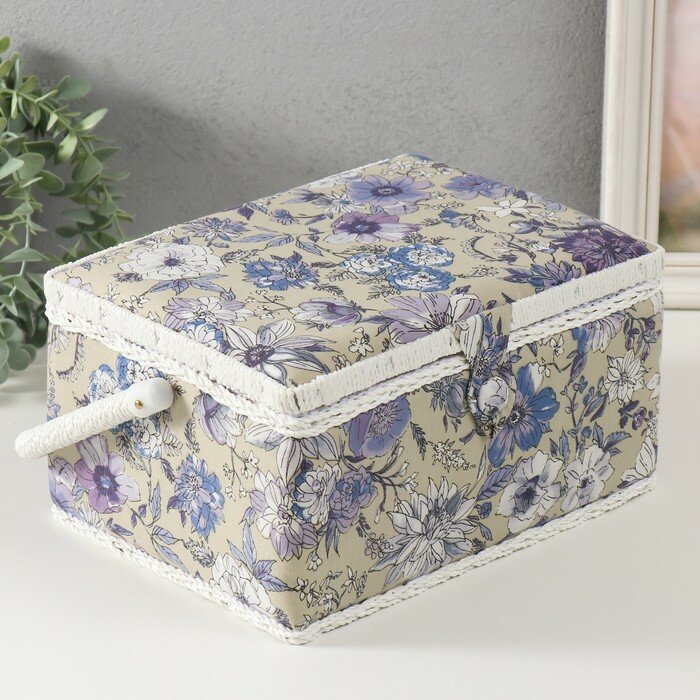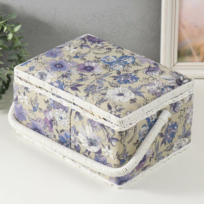 Купить Шкатулка для рукоделия и шитья «Сиреневая цветочная поляна», хранение ниток, иголок, мелочи, 19×26×14.5 см