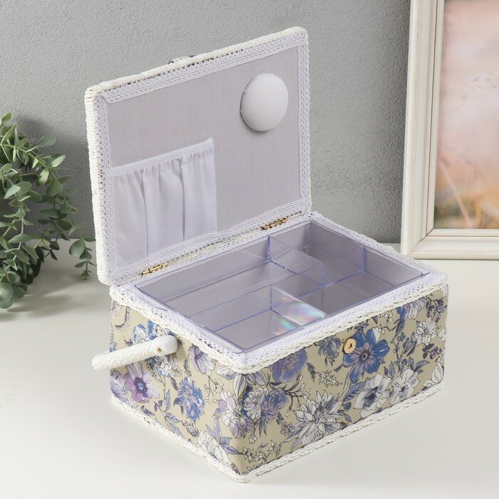 Шкатулка для рукоделия и шитья «Сиреневая цветочная поляна», хранение ниток, иголок, мелочи, 19×26×14.5 см интересное: