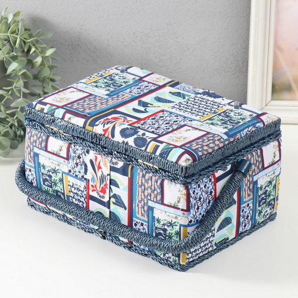 Шкатулка для рукоделия и шитья «Пэчворк. Синие цветы», хранение ниток, иголок, мелочи, 19х26х14,5 см
