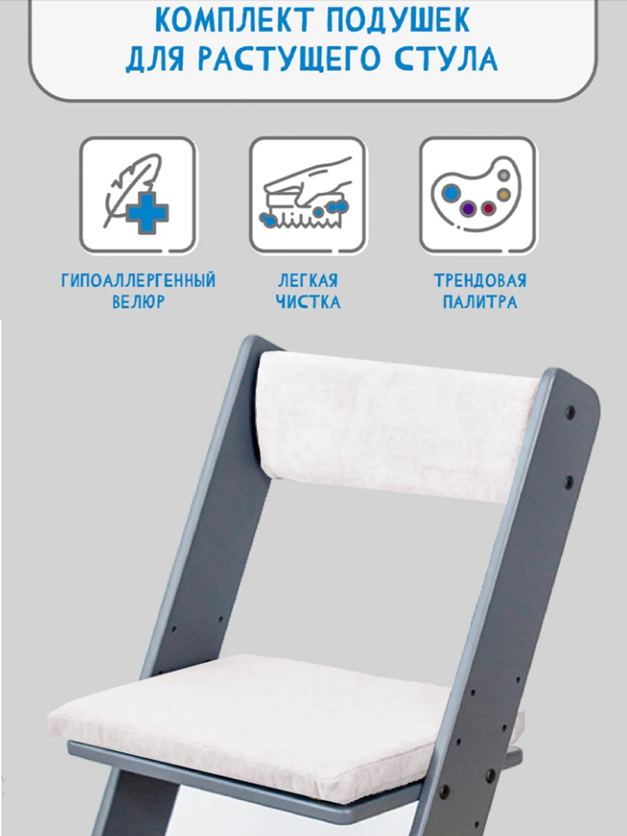 Комплект подушек на растущий стул, чехлы накидки из износостойкого велюра, цвет пепельный