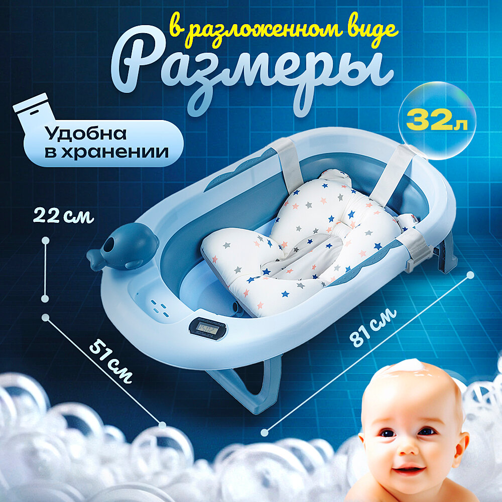 Купить Ванночка для купания новорожденных складная с термометром, ковшиком и матрасом