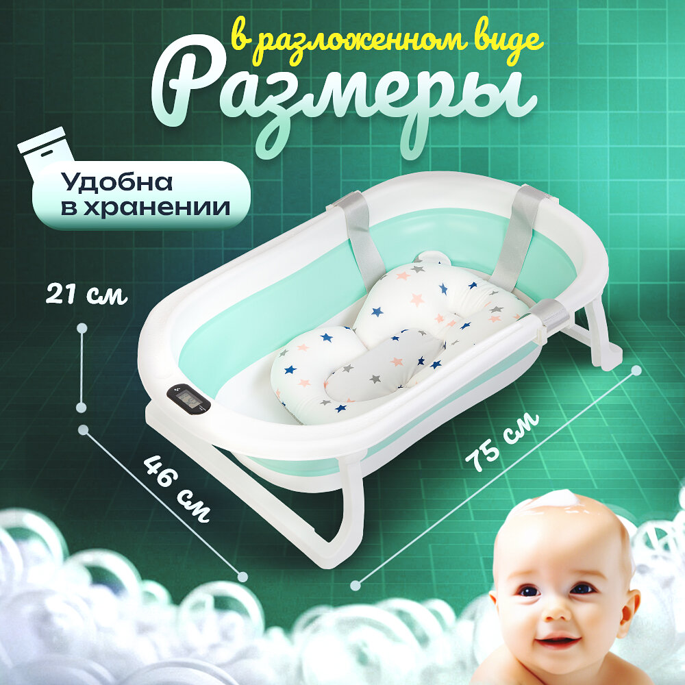 Купить Ванночка для купания новорожденных / детская ванночка зеленая / 76х47х10 с термометром и подушкой / ванночка складная