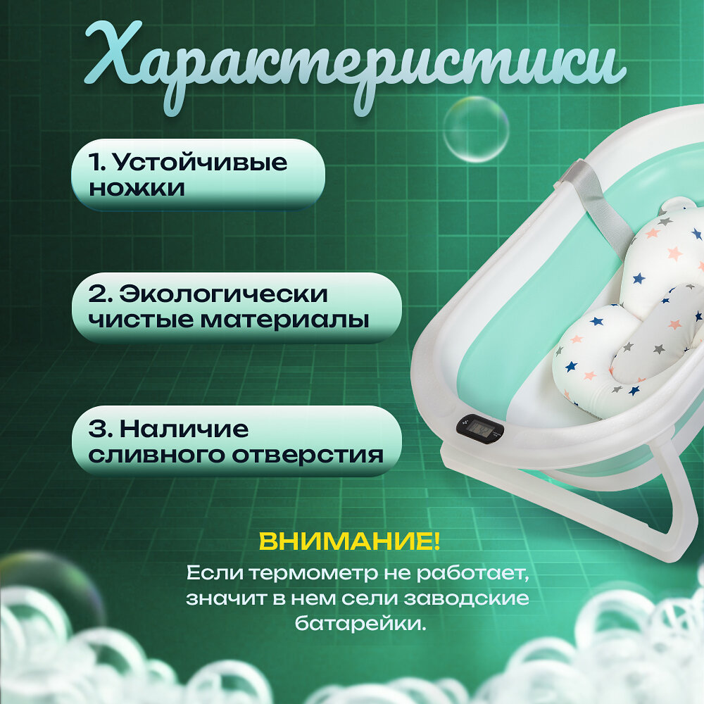 СохранитьВанночка для купания новорожденных / детская ванночка зеленая / 76х47х10 с термометром и подушкой / ванночка складная интересное: