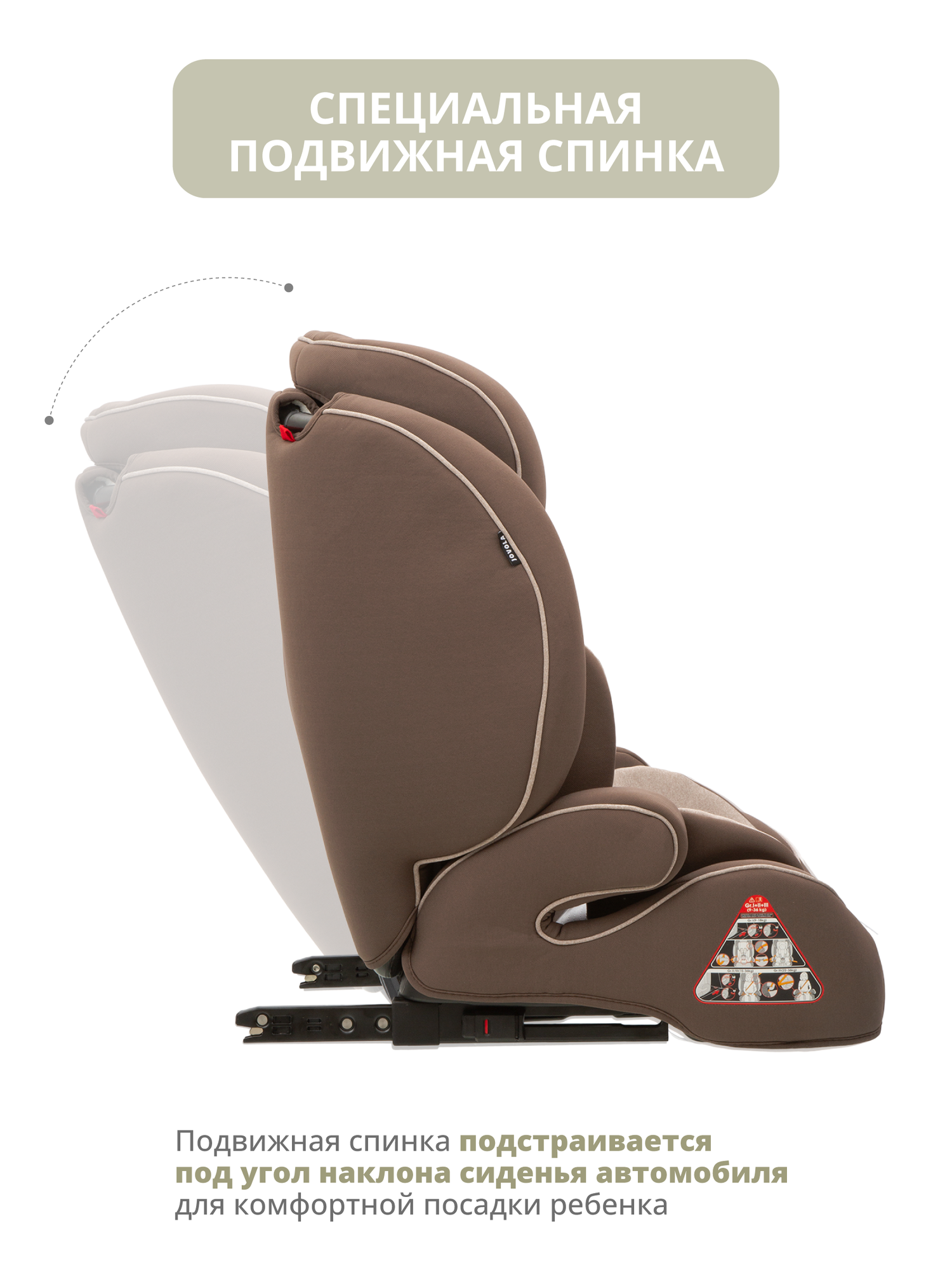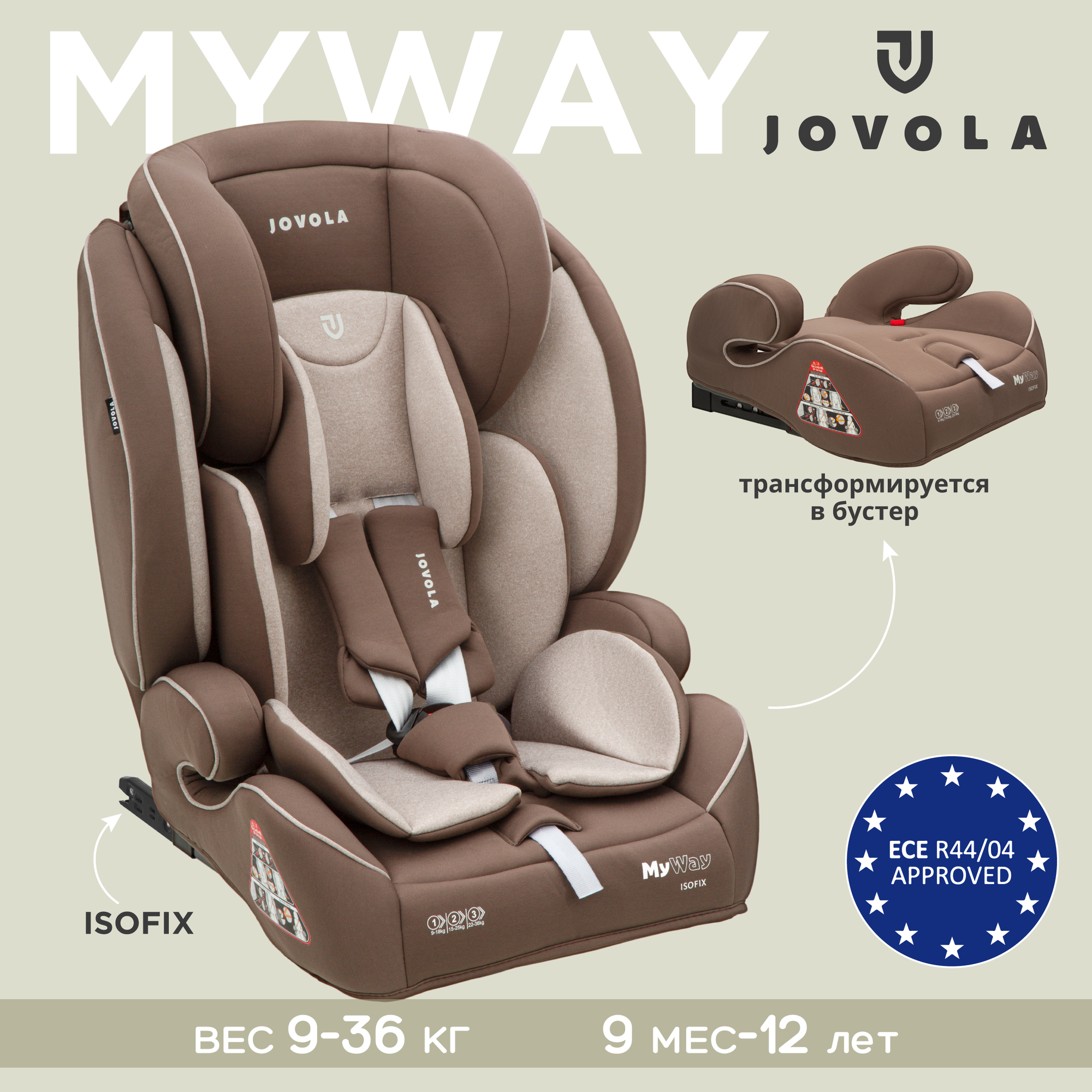 Автокресло-трансформер JOVOLA MyWay ISOFIX, бустер, группа 1,2,3, 9-36 кг, бежевый-коричневый