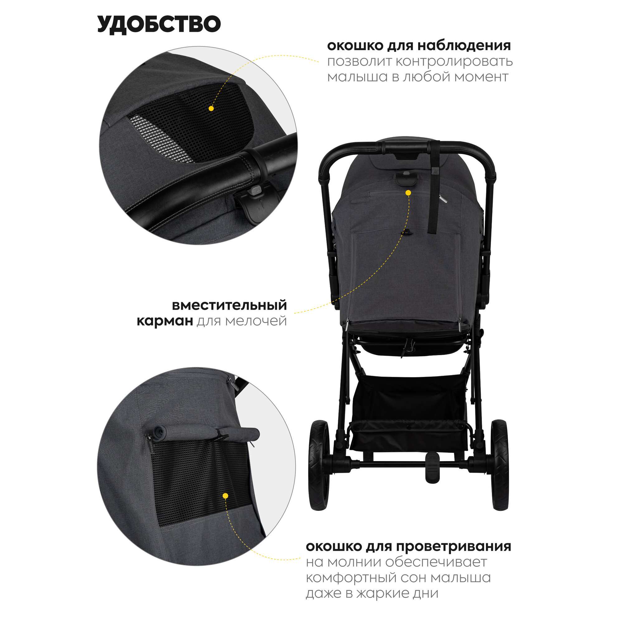 | Аксессуары в комплекте | антимоскитная сетка, бампер, капюшон, накидка на ноги, солнцезащитный козырек |