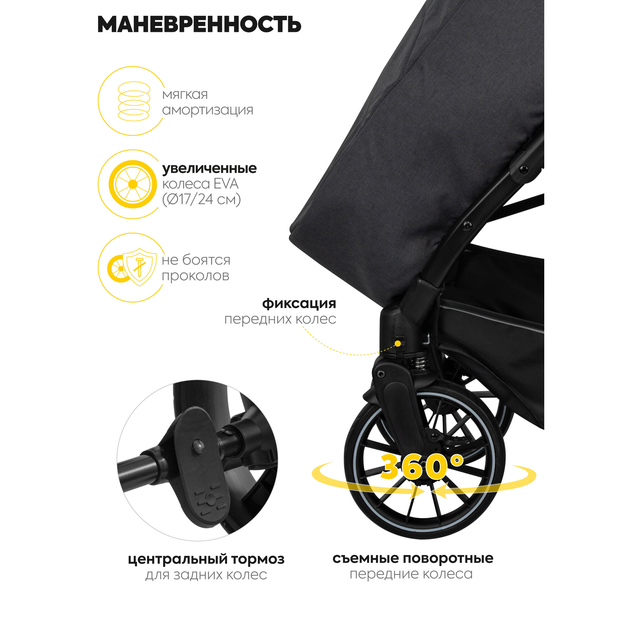 | Колеса | 4 шт., EVA, 17-24 см |