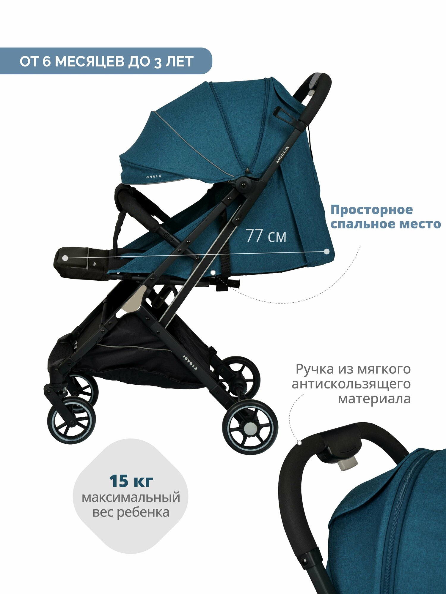 СохранитьДетская прогулочная коляска Jovola Modus с ручкой для транспортировки, колеса EVA, синий интересное: