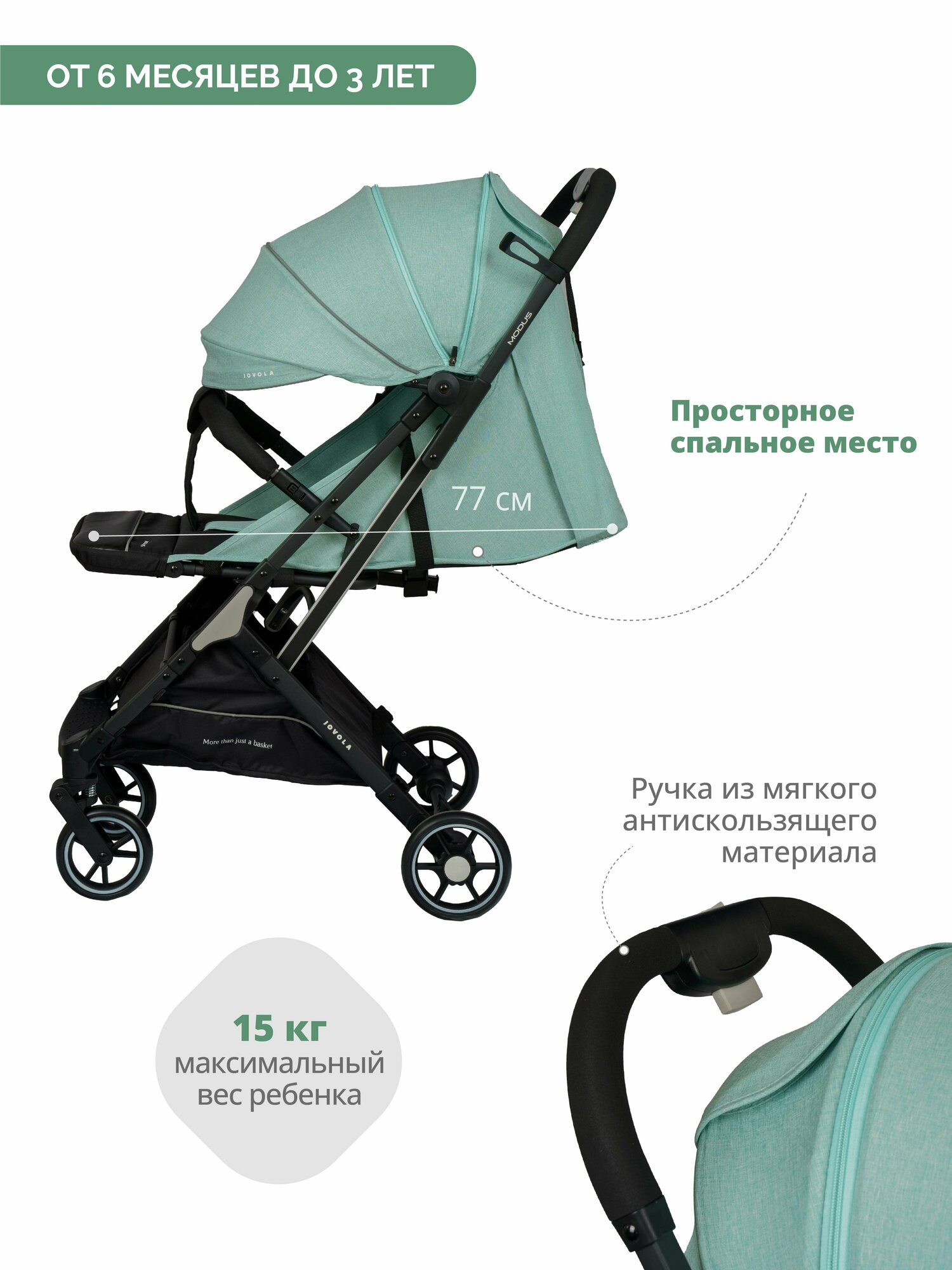 СохранитьДетская прогулочная коляска Jovola Modus с ручкой для транспортировки, колеса EVA, мятный интересное: