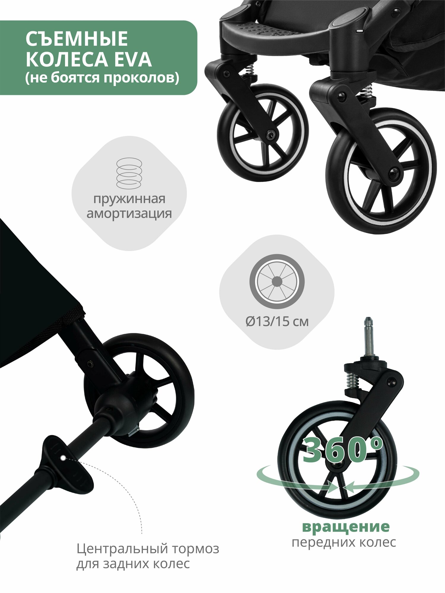 | Колеса | 4 шт., EVA, 13-15 см |