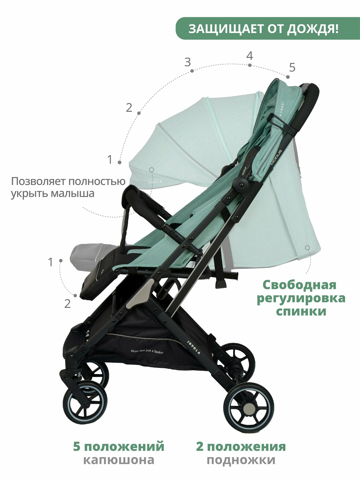 Коляска прогулочная Jovola Modus с ручкой для транспортировки, мятный