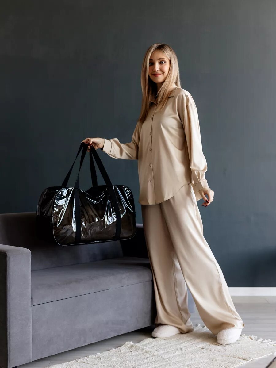 Прозрачные сумки в роддом 3 шт, бренд "Золотой октябрь", цвет черный интересное: