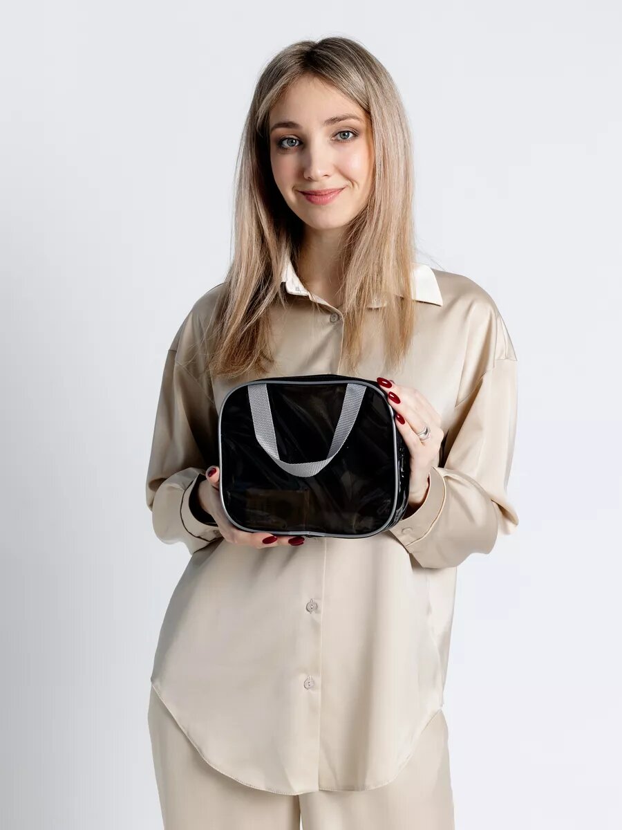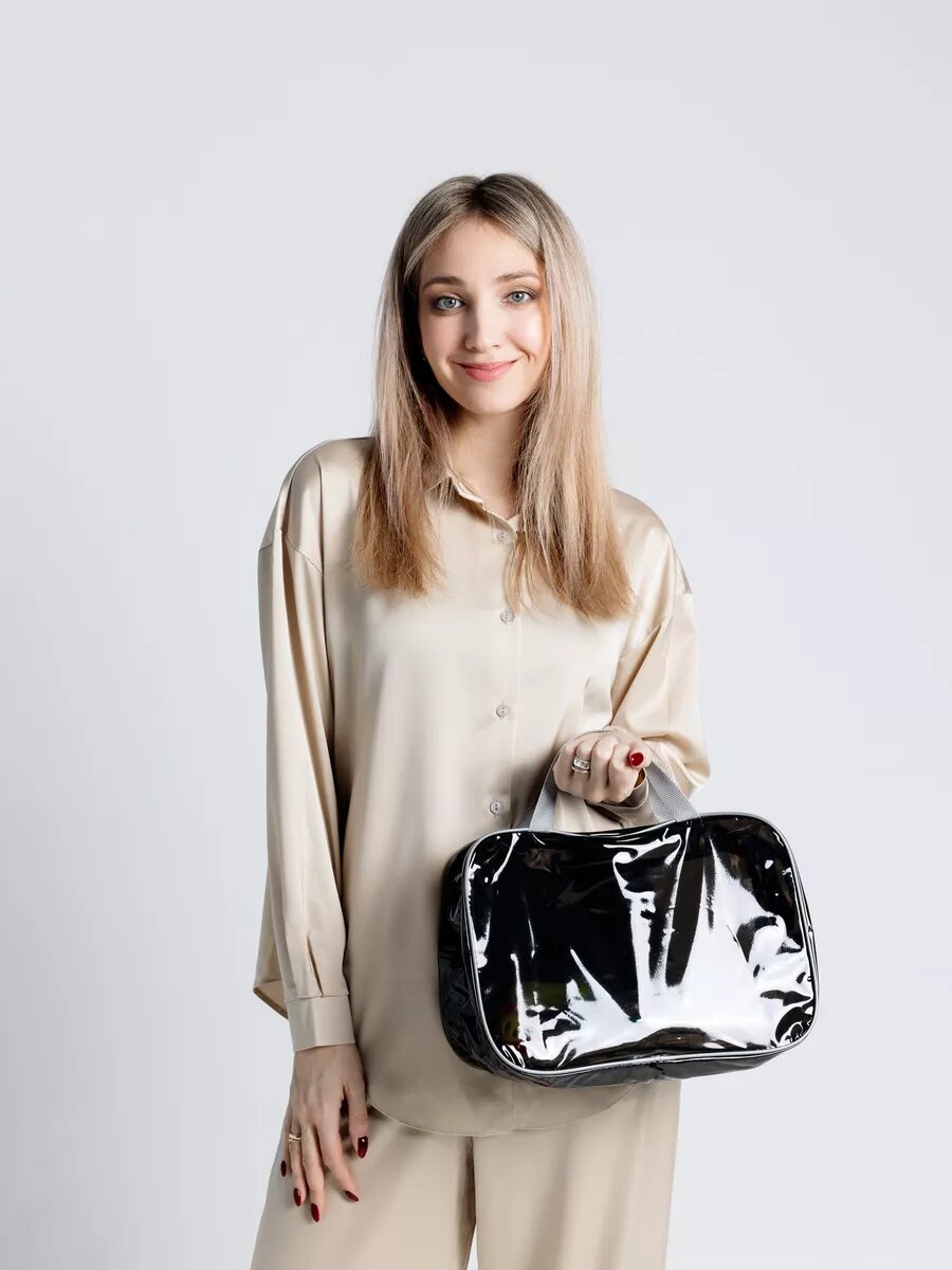 Прозрачные сумки в роддом 3 шт, бренд "Золотой октябрь", цвет черно-бежевый