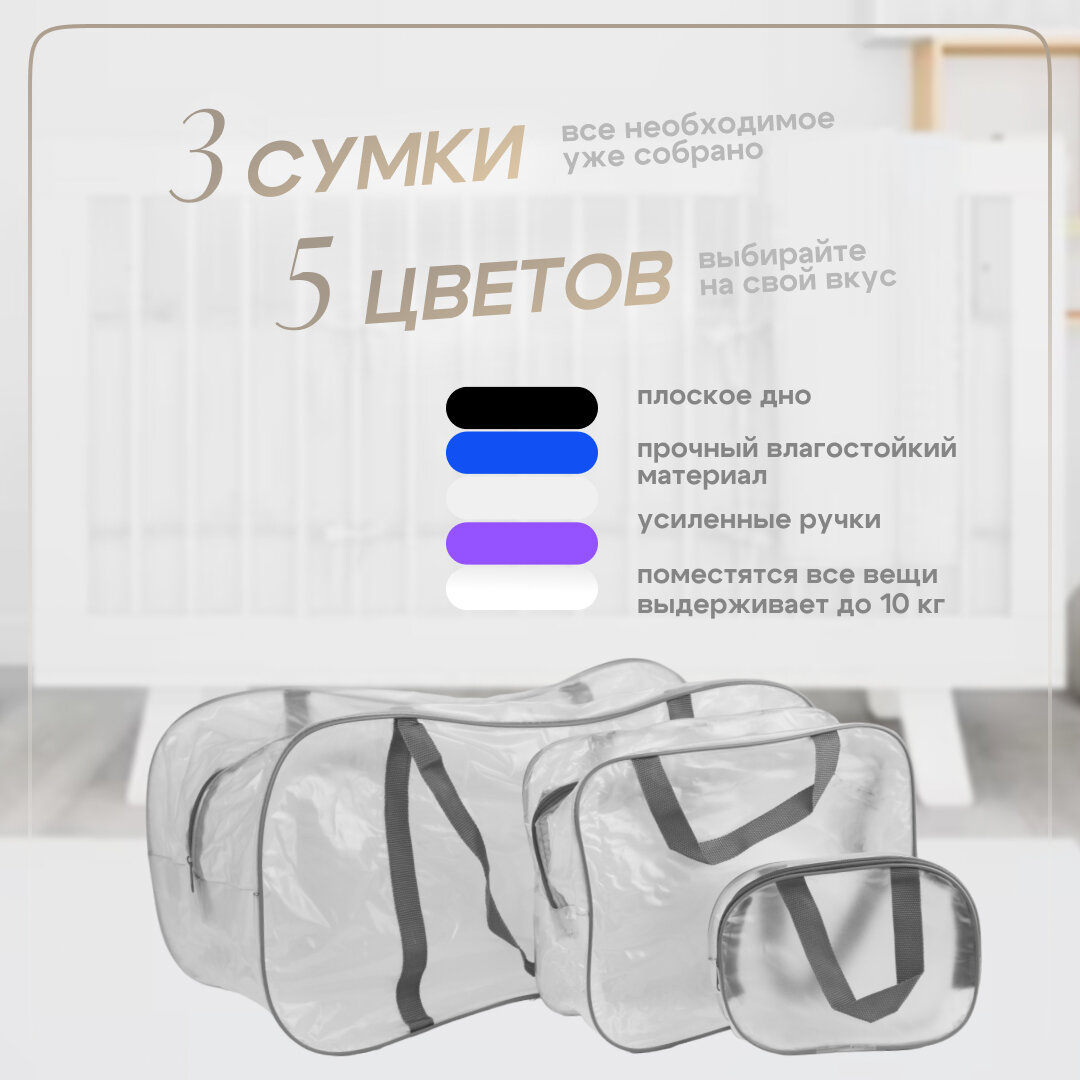 Сумка в роддом готовая для мамы и малыша с наполнением, 61 предмет, прозрачная