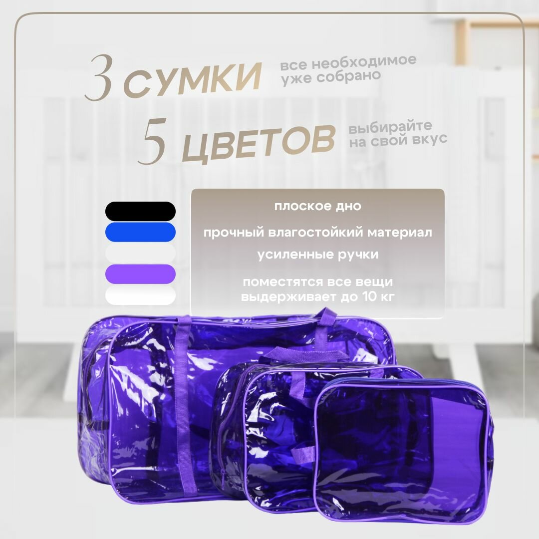 Сумка в роддом готовая для мамы и малыша с наполнением, 61 предмет, фиолетовая