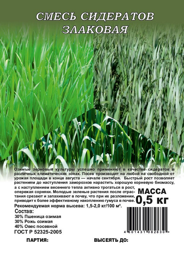 | Трава | горчица / овес / пшеница / рапс / редька масличная / рожь / ячмень |