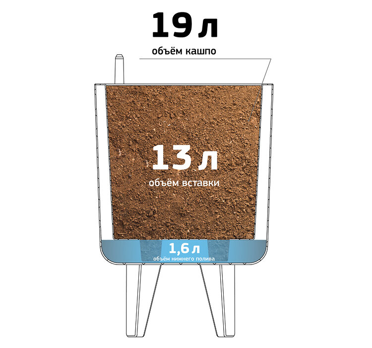 Кашпо шэнк D275 мм 13,5л с вставкой и с автополивом белый