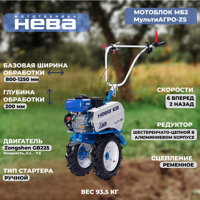 Купить Мотоблок Нева МБ-2ZS "MultiAGRO", бензиновый двигатель, 7,5 л. с