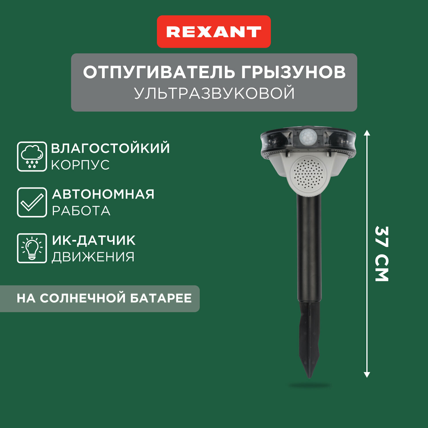 Ультразвуковой отпугиватель Rexant универсальный на солнечной батарее