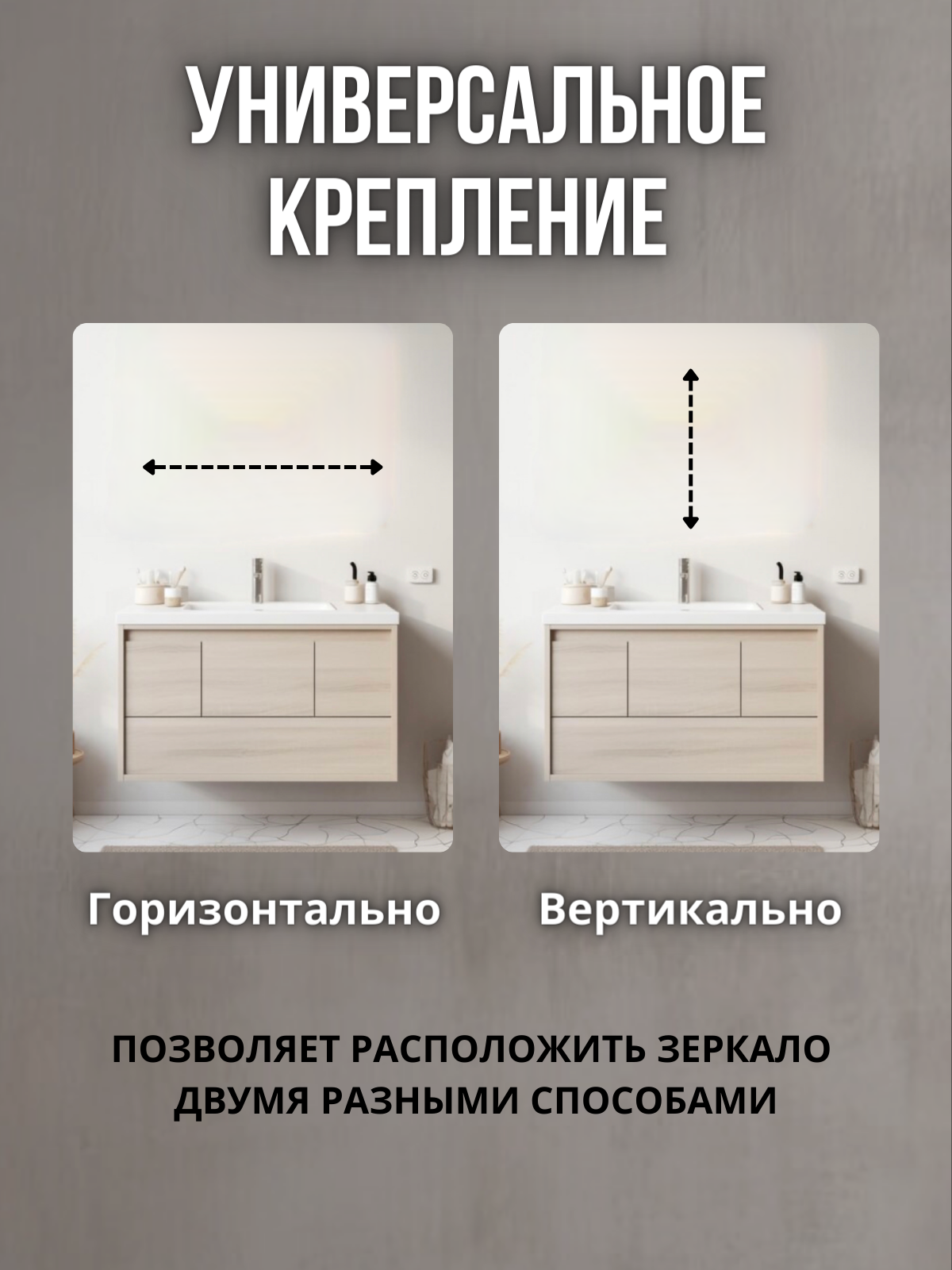 Зеркало настенное для ванной КерамаМане 70*100 см с холодной подсветкой 6000 К с сенсорной кнопкой