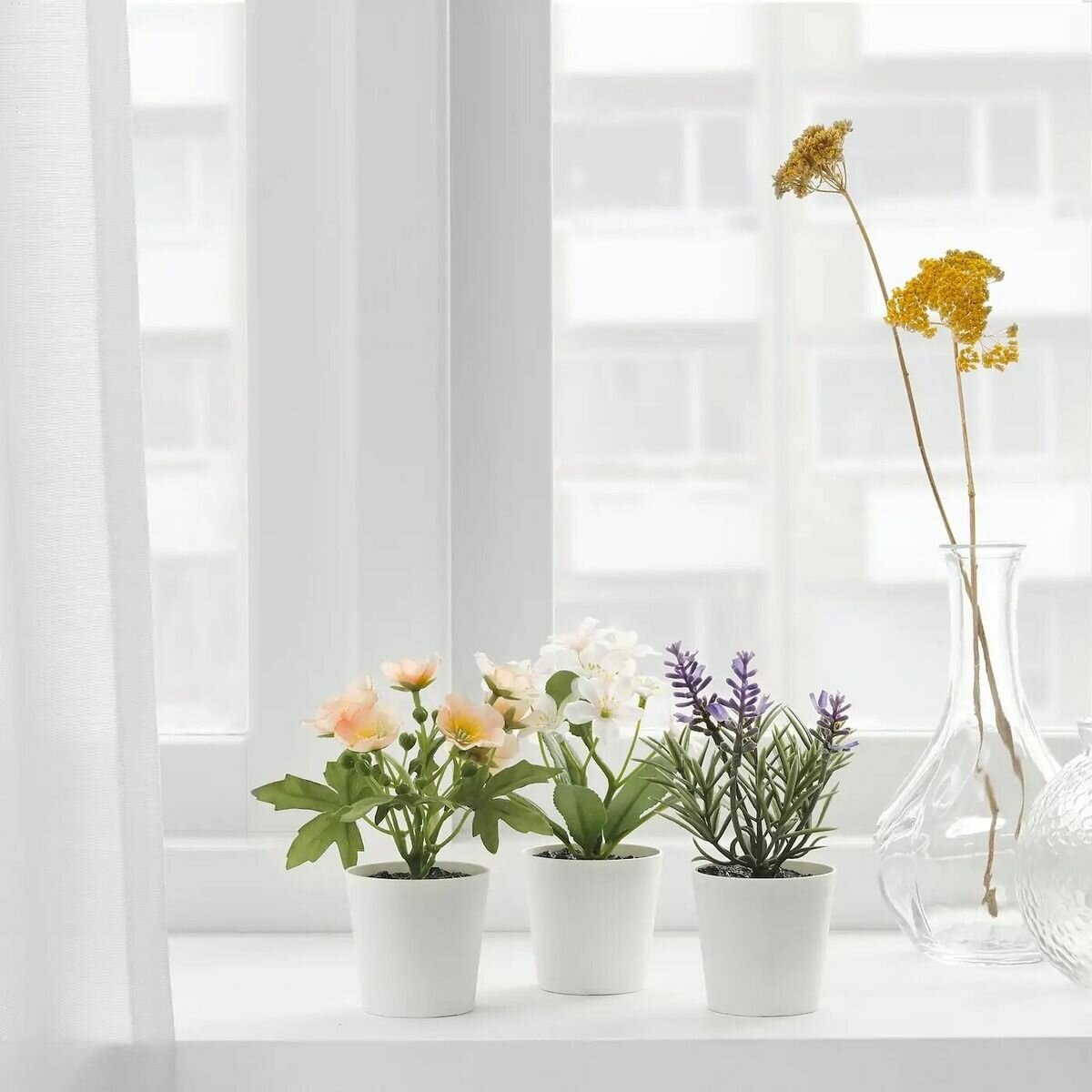 Купить Искусственное растение в горшке 3 шт 6х15х6 см д/дома/улицы белый/зеленый IKEA FEJKA фейка