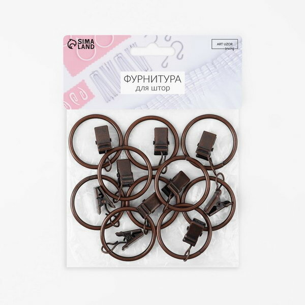 Кольцо для карниза, с зажимом, d - 22/26 мм, 20 шт, цвет бронзовый, 1 наб.