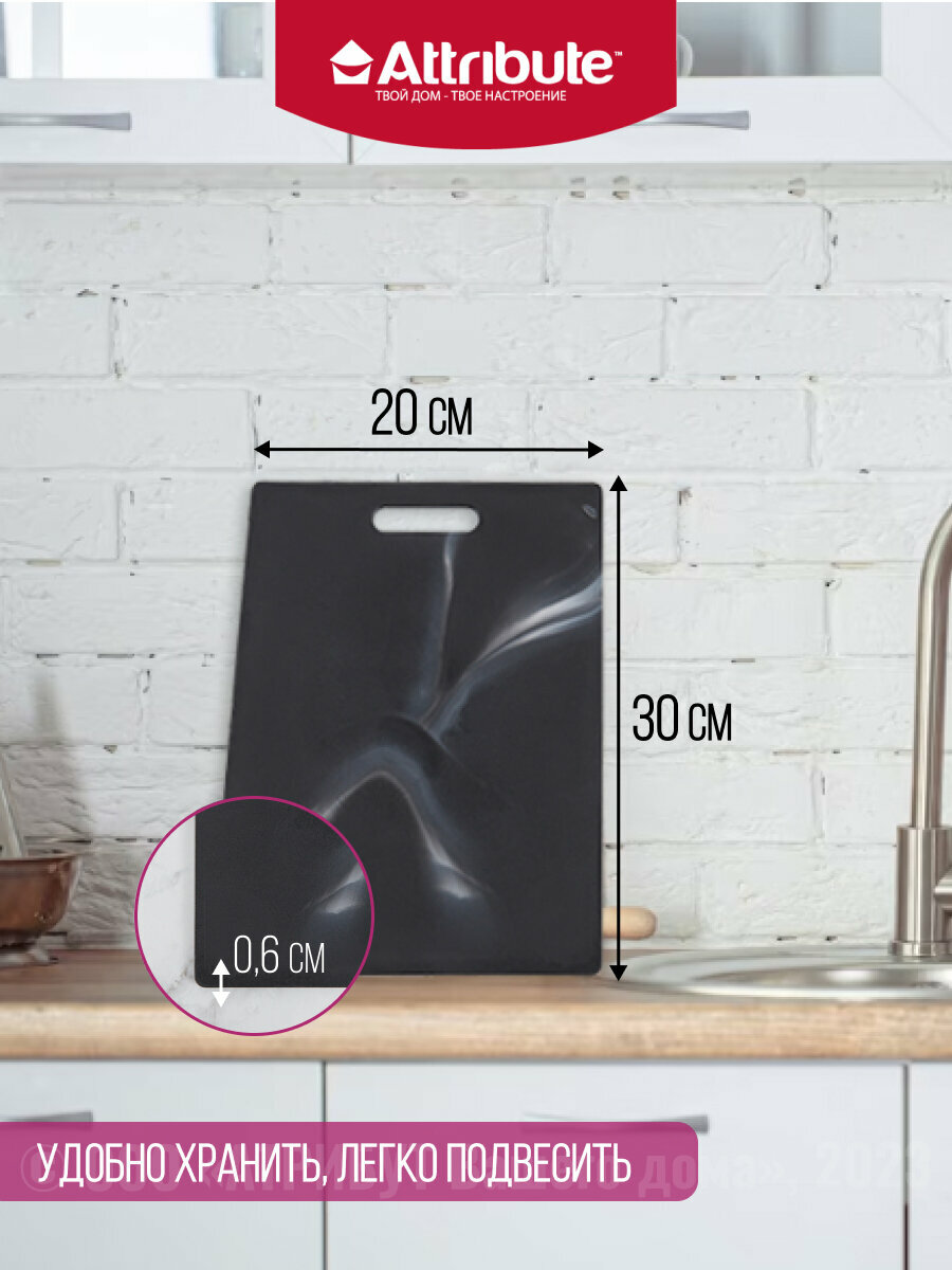 Доска разделочная MARBLE Black 20х30см,ATTRIBUTE CUT.BOAR