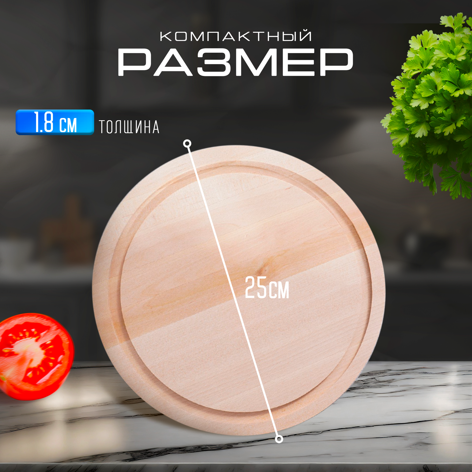 Купить Доска разделочная деревянная круглая Доляна «Фортуна», d=25 см, толщина 1,8 см, берёза
