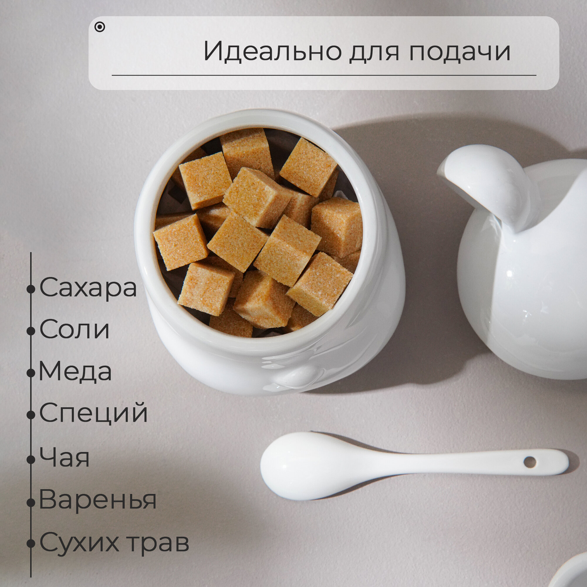 Сахарница с ложкой Доляна «Емеля», 200 мл, цвет белый