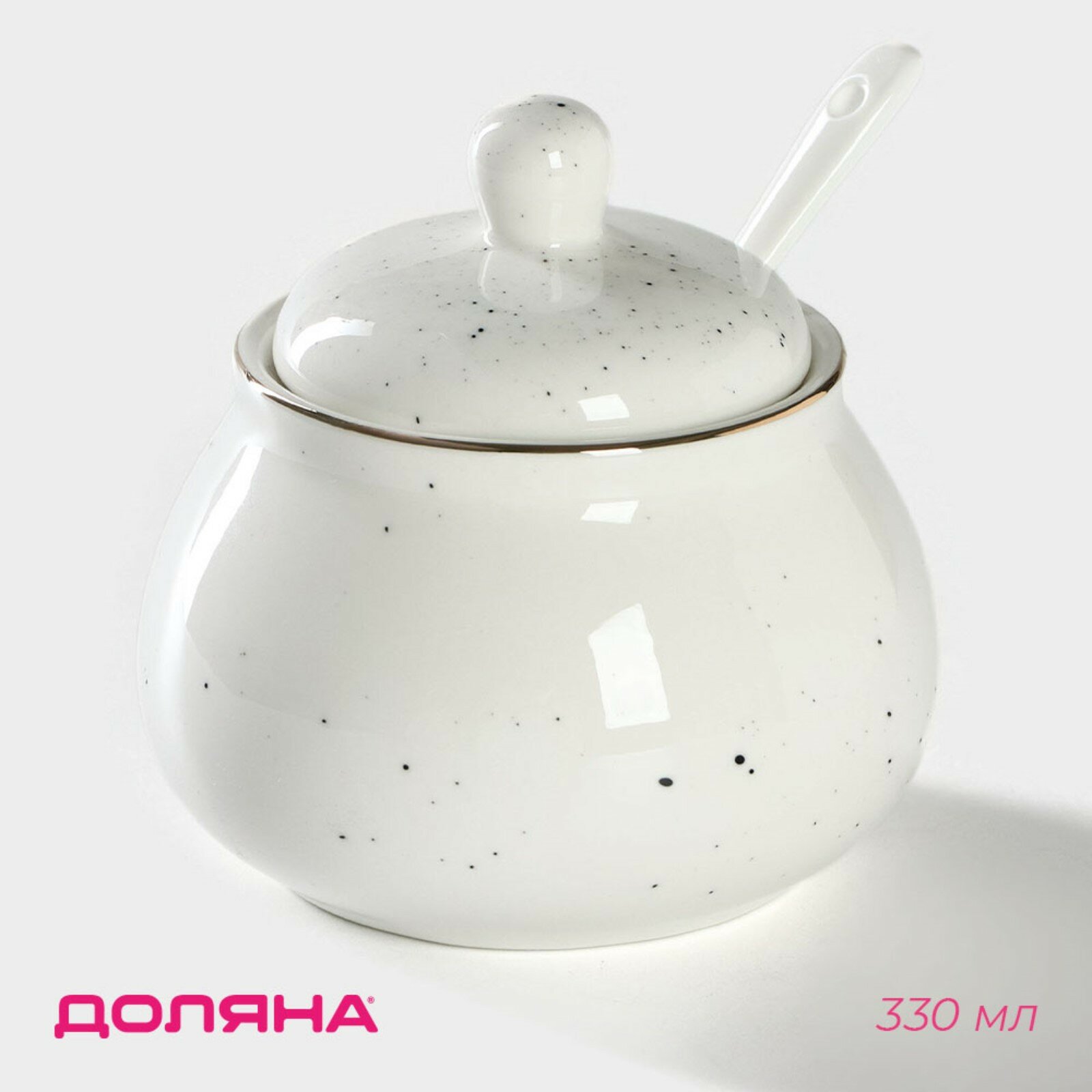 Купить Сахарница фарфоровая с ложкой Доляна «Млечный путь», 330 мл, цвет белый в крапинку