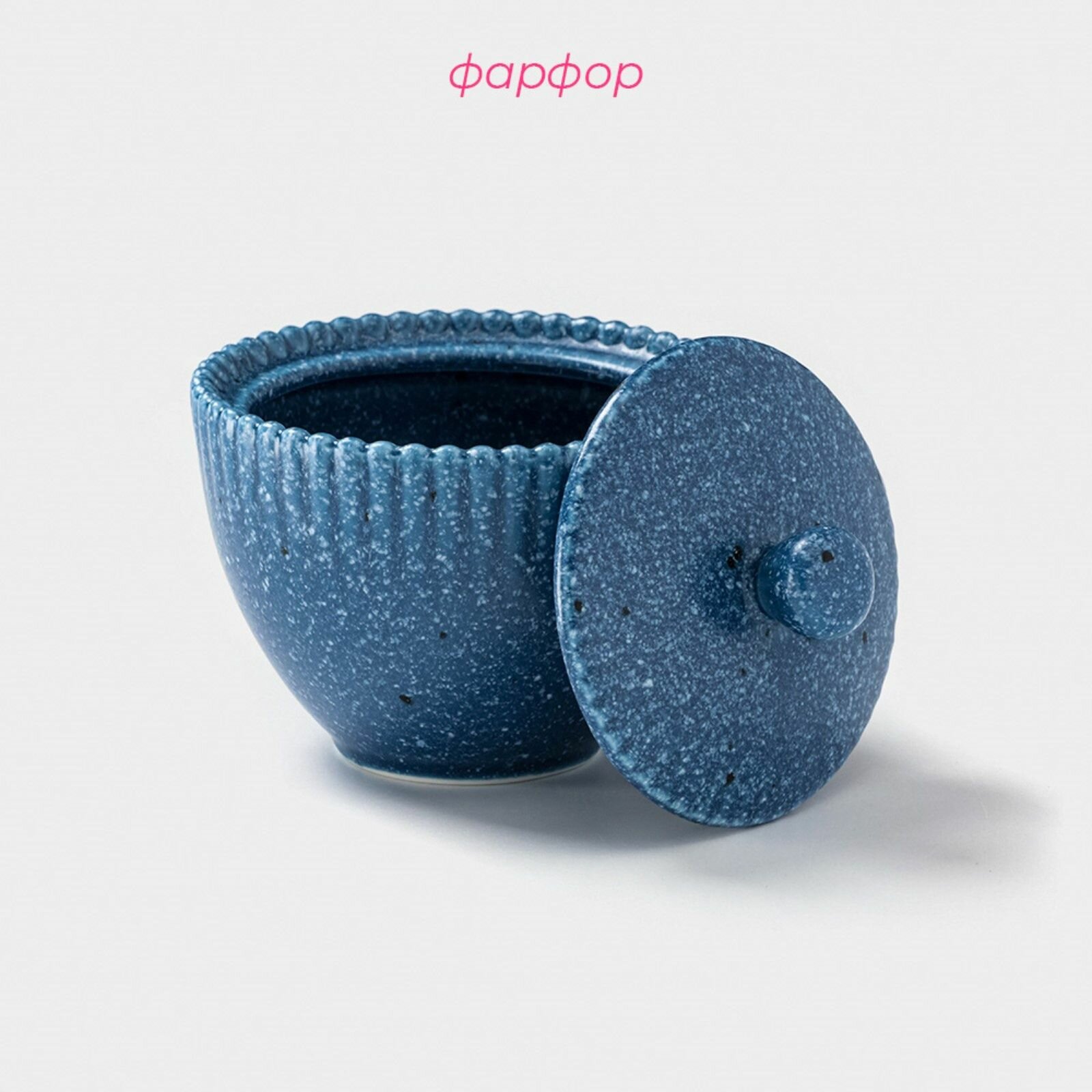 Сахарница фарфоровая с ложкой Доляна «Млечный путь», 330 мл, цвет белый в крапинку