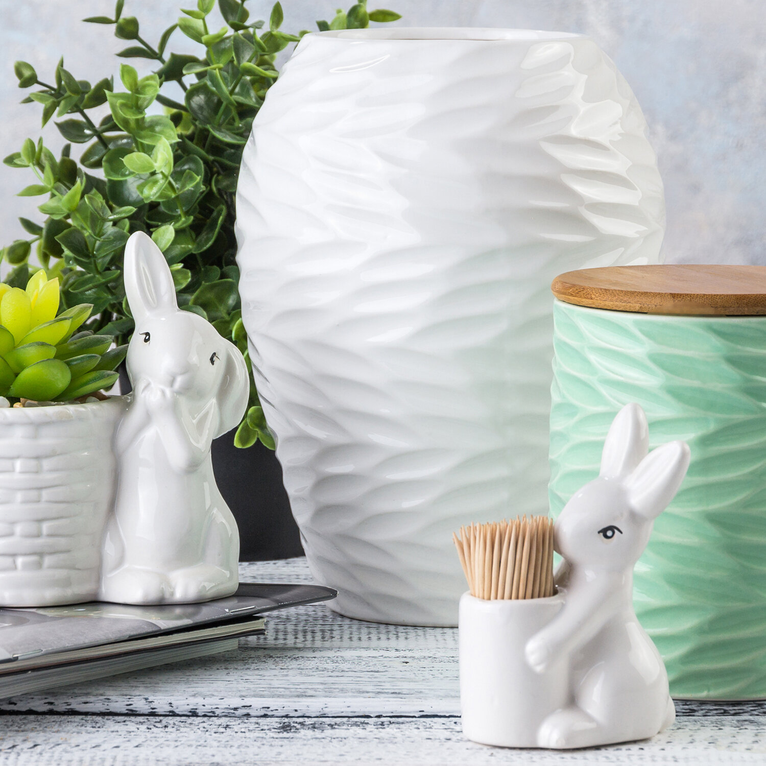 Купить Вазочка под зубочистки 6,5х4,5х10 см Elan Gallery Зайка с зубочистками, Пасха