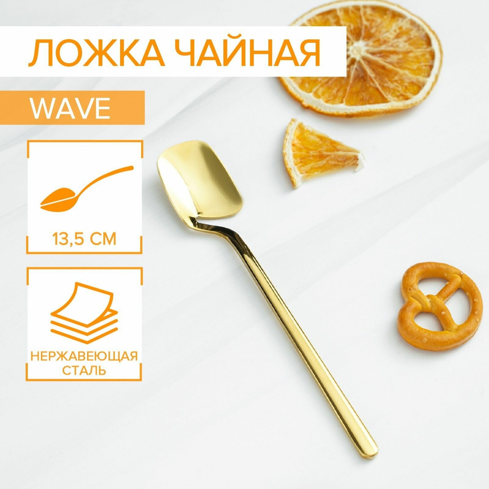 Купить Ложка чайная Magistro Wave, 13,5 см, цвет золото