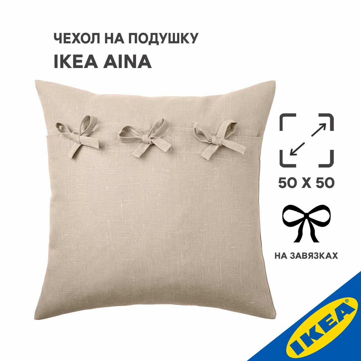 Чехол на подушку 50x50 см бежевый IKEA AINA айна интересное:
